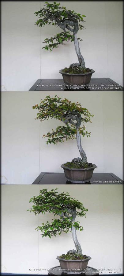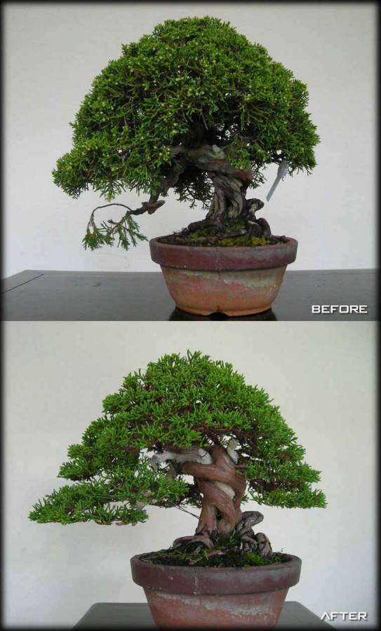 Прогуливаясь по иноязычной части интернета иногда можно отыскать довольно хорошую пищу для размышлений Предлагаю познакомиться - Naoki Maeoka, преподаватель Fujikawa International School of Bonsai . У них, кстати, есть краткосрочные курсы обучения для всех желающих, срок - вплоть до одной недели, но сейчас не об этом... У Naoki есть свой блог, довольно молодой, но дающий как раз ту информацию, которой нам так не хватает. На нем представлены фото деревьев до проработки образа и, соответственно, после. Вроде ничего особенного, нет радикальных изменений линии ствола и ветвей, создания джинов и шари и т.п. Но, как говорится, почувствуйте разницу... Остальное можно увидеть здесь в большом размере и хорошем разрешении