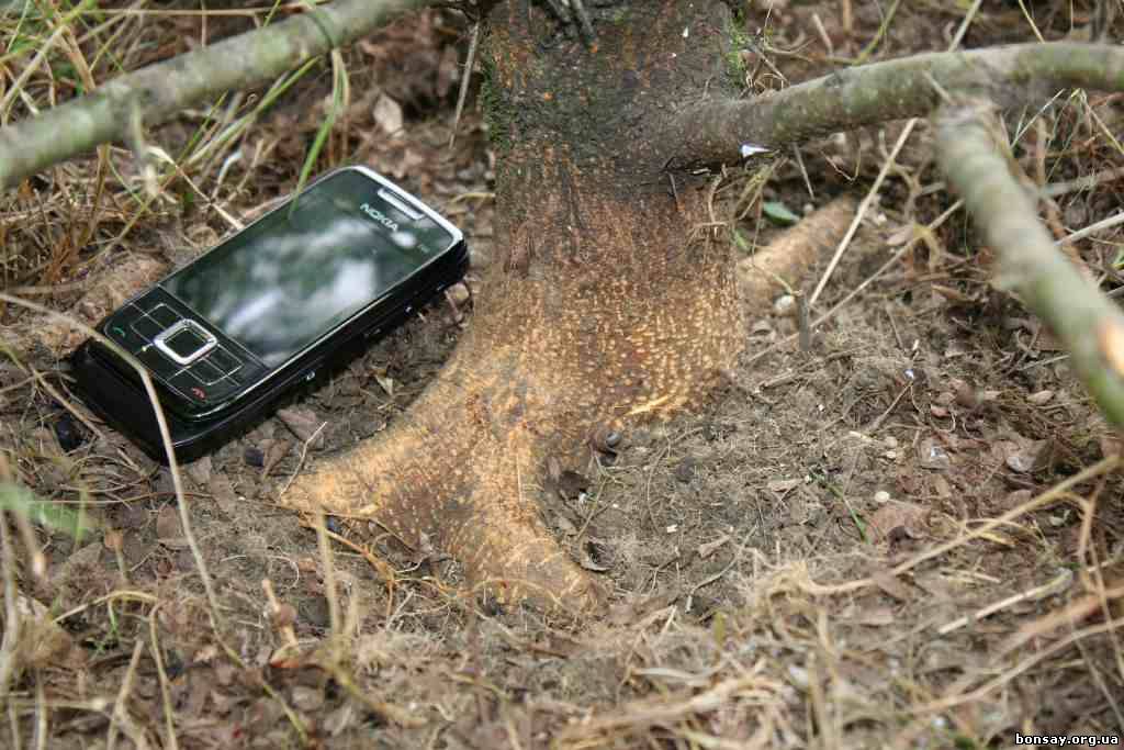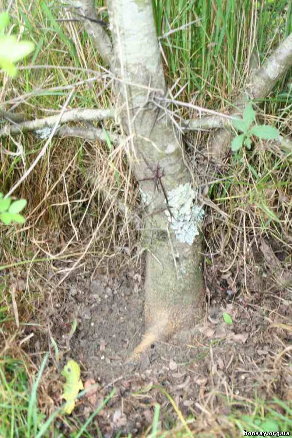 От ствола отходят горизонтально корни толстые немного.