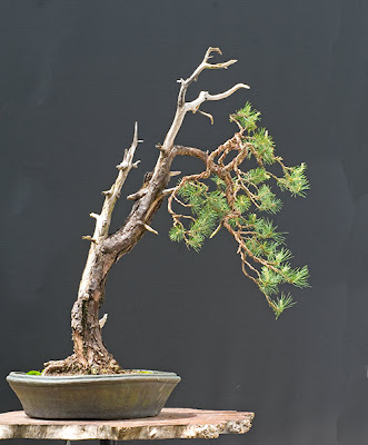 В плошку она войдет, корневая компактная, я еще с ней поработаю. Хочу немного дополнить: диаметр ствола 4см, высота до нижних ветвей 50см, общая высота 110см. Я полагаю, что с формой ствола надо определяться именно сейчас, пока еще я могу сохранить и усилить нижние ветви. А разогнать ствол можно и позже, одновременно с формированием кроны. Вячеслав, а в какую сторону Вы бы нагнули верхушку? Я, как ни прикидываю, получается чересчур извилисто. Имеет ли смысл сохранять верхнюю часть? Может быть, убрать все, что выше нижнего яруса? 50см для сосны вполне достаточно. Хотя, если бундзинги...