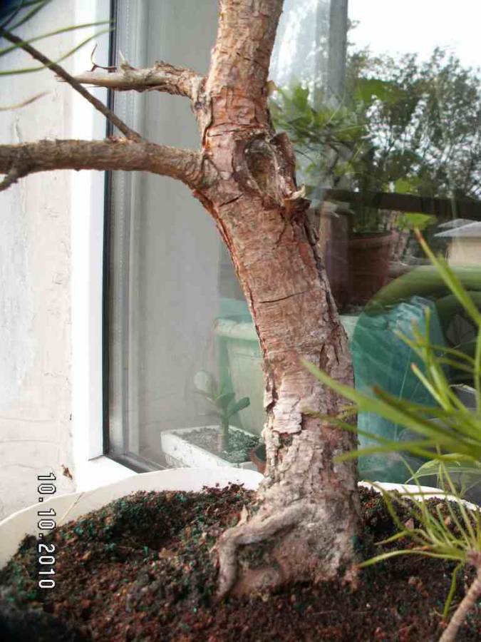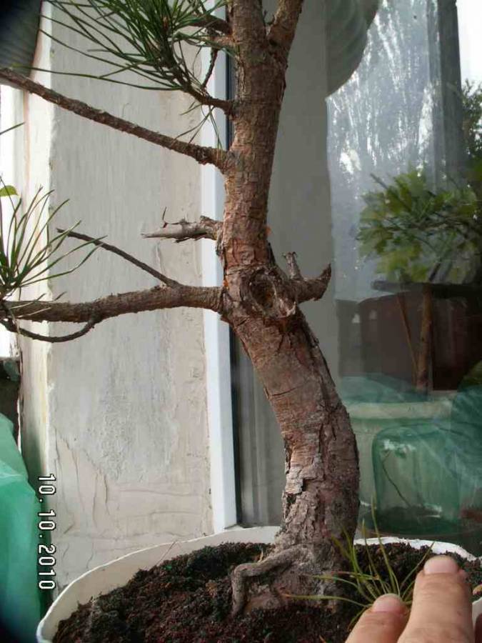 сосни були навряд чи гірські, принаймні не в горах копані. цієї весни пересаджу їх в бонсайниці, заодно й перевірю як там їхні корінці в рідному "пісочку" розвинулись за дві зими (півтора літа). рідної хвої на них немає, вже уся нова. на одній дрібна на другій "кінська" в порівнянні з її розмірами.