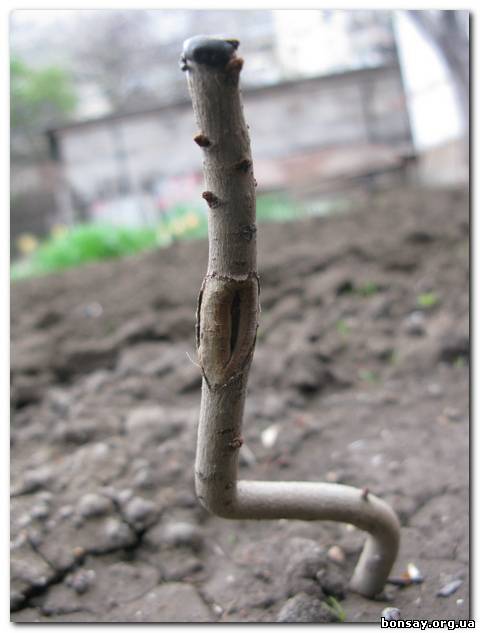 Если есть мочалка, то это уже упрощает процесс. Отводку ставить нет смысла. Аккуратно окопать и изъять. Чикнуть ствол в месте где он с плавного верхнего изгиба переходит в прямую палку, там кажись почка есть, над ней. Тырить с людного места придется тогда когда почки малость набухнут, это сигнал нам. Не нужную часть отрезать можно сейчас и обработать место среза варом или тем что есть. Если есть возможность высадить в ОГ, то на первое время сделать что-то вроде микротеплицы из клеенки, слегка притенить и следить за ним Удачи.