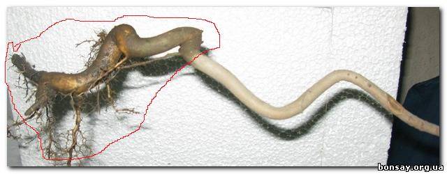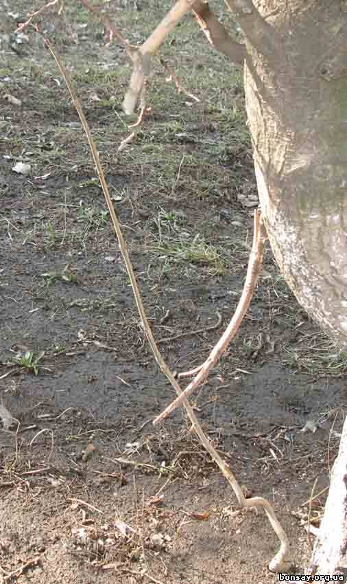 Добавлено (05.03.2010, 03:38) --------------------------------------------- Сегодня "проходила мимо" дерева, но была без фотоаппарата. Покопалась немного, пытаясь определиться, что делать. Изгибы ствола уходят в грунт еще на несколько сантиметров. Потом показались корни - точно видела отходящие от стволика 2 шт. толщиной где-то 4 мм. + небольшая мочалочка чуть выше. Думаю, может корневая шейка была выше, а потом был вскопан приствольный круг и уровень грунта поднялся? В общем я в раздумьях. Отводку ставить жалко - потеряю часть ствола, а выкапывать надо как на археологических раскопках - не отрывая полностью, прикинуть сколько у деревца корней, если достаточно - рискнуть, нет - все же ставить отводку. Поможете?