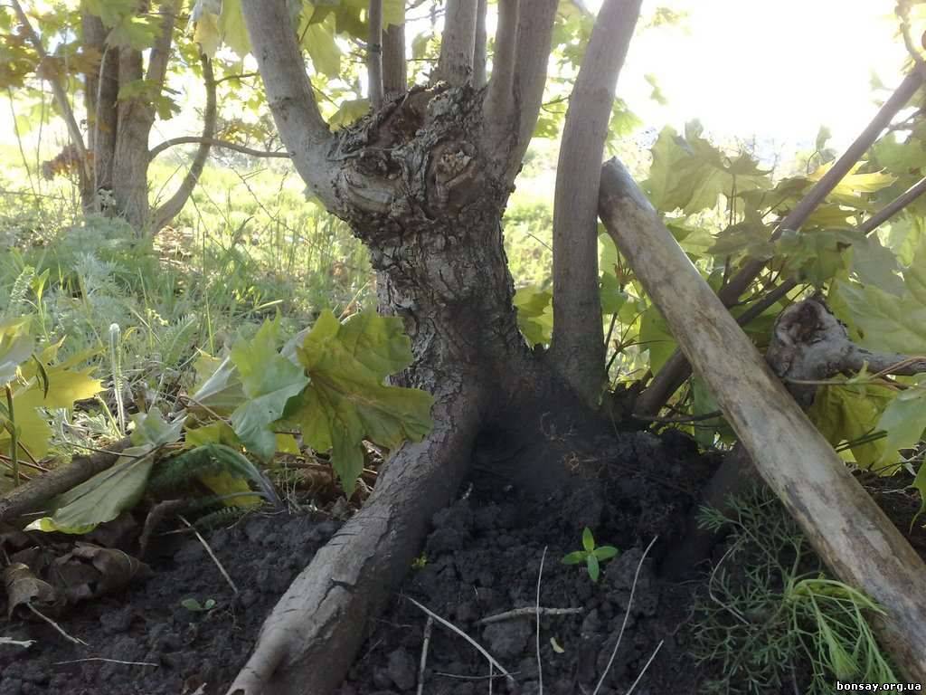 №1 Этот клен мне понравился своем расплывчатым основанием, но ствол ровный и не интересный. На полуметровой высоте распустилась новая почка. Есть мысль взять только из-за основания и надеяться на пробуждение новых точек роста. Основание порядка 8 см.