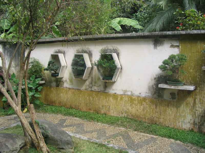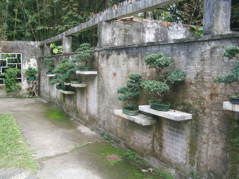 Кроме определенной симпатичности есть спорные моменты в такой организации пространства. Допустим эта стена находится бОльшую часть дня под лучами солнца - во-первых она будет довольно сильно греться, во-вторых неизвестно, насколько хорошо это пространство проветривается, а кронам нужно движение воздуха. Допустим не находится под лучами - сзади еще находится здание, света для комфортного проживания деревьев может быть маловато. Белые стены будут греться меньше, вот как в этом патио , но для полива деревья придется снимать, иначе вряд ли они останутся белыми надолго. Но как музейная экспозиция внимание очень привлекает Дальше есть вопросы и по самим полкам - деревья должны освещаться солнцем со всех сторон, значит их нужно будет поворачивать. Если они имеют разгонные ветви или оставлены для отдыха после каких-либо потрясений или это ямадори/садовый материал, с заготовками под джины для работы , Вы не сможете этого сделать - компактная полка не даст. Т.е. мамэ да, шохины с определенными усилиями туда тоже можно затрамбовать, и уже далеко не все и ненадолго. Вот на этом фото видно, что деревья, будучи расположены надолго в одной позиции, будут иметь ограниченный объем. Т.е. без поддержки стены, стоя отдельно на столике, будут плосковаты. Есть особый стиль в пенджинг (bigua penjing), в котором деревья используются в настенной композиции и имеют лишь половину от возможного объема кроны, а то и меньше, потому что подчинены определенным художественным правилам - http://www.forumhobbyindonesia.com/viewtopic.php?f=17&t=7285 Но это же не совсем классический бонсай... Поэтому мне кажется, что такая стена скорее выгодна как визитка какого-нибудь магазина по продаже бонсай для привлечения внимания обывателей, чем бонсаисту для удобства работы... не согласны?