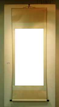 Интересная идея Тогда свиток тоже какой-нибудь ультрасовременный? Например, просто пустой "бланк" или стилизованный светильник? Только не слишком яркий. Кусамоно навскидку не придумалось...