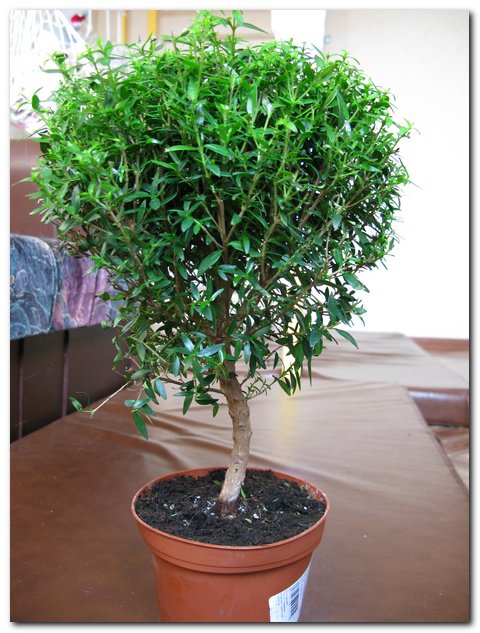 Когда был объявлен старт конкурсу, я спросила, возможно ли присоединиться к нему позже, когда в магазины привезут какой-нибудь интересный моллсай. Ждала я долго, но ничего так и не выбрала. В последнее время все сократили ассортимент, даже местный ОБИ, в котором всегда наибольший выбор голландско-азиатских пеньков. Поэтому, посоветовавшись с друзьями (спасибо, seems ), я решила выставить на конкурс мирт, купленный этой весной.