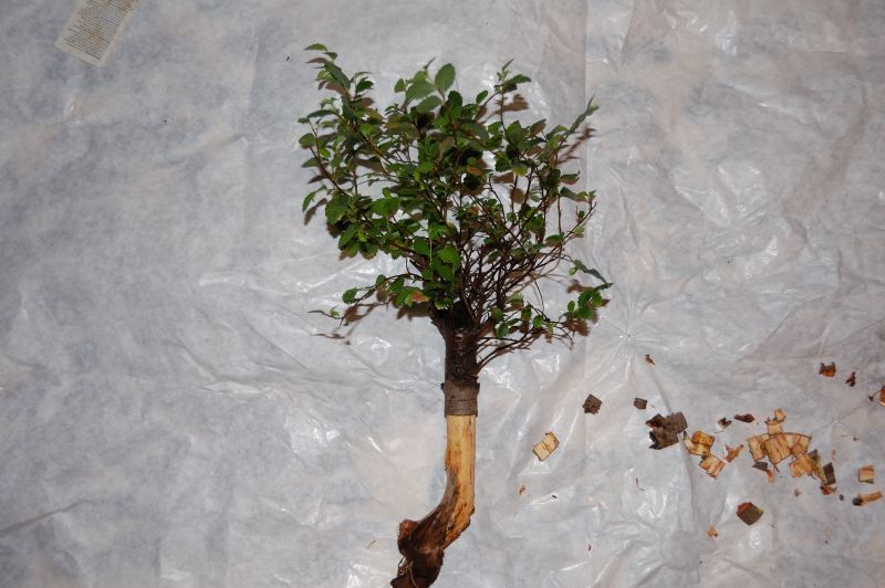 Приобрел себе для опытов сие "чудо в перьях", на уценке за совсем копейки. Проблема на глаз была в том что был практически без корней, и с небольшой гнилью. Но с неплохим стволом (имхо). Подумал и решил для начала и такой сойдет))) Пришёл домой вынул из плошки и вот....