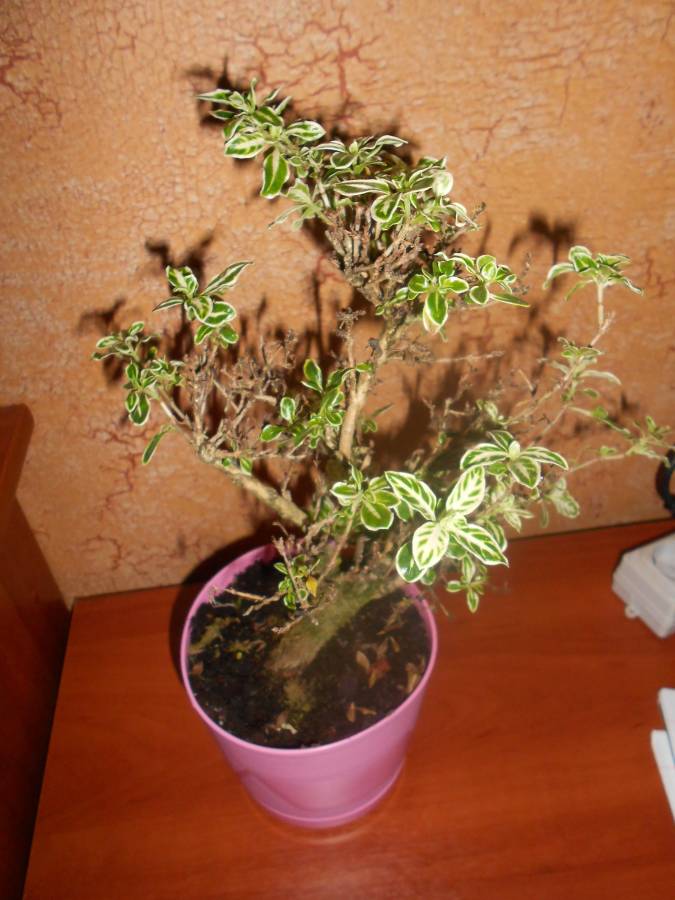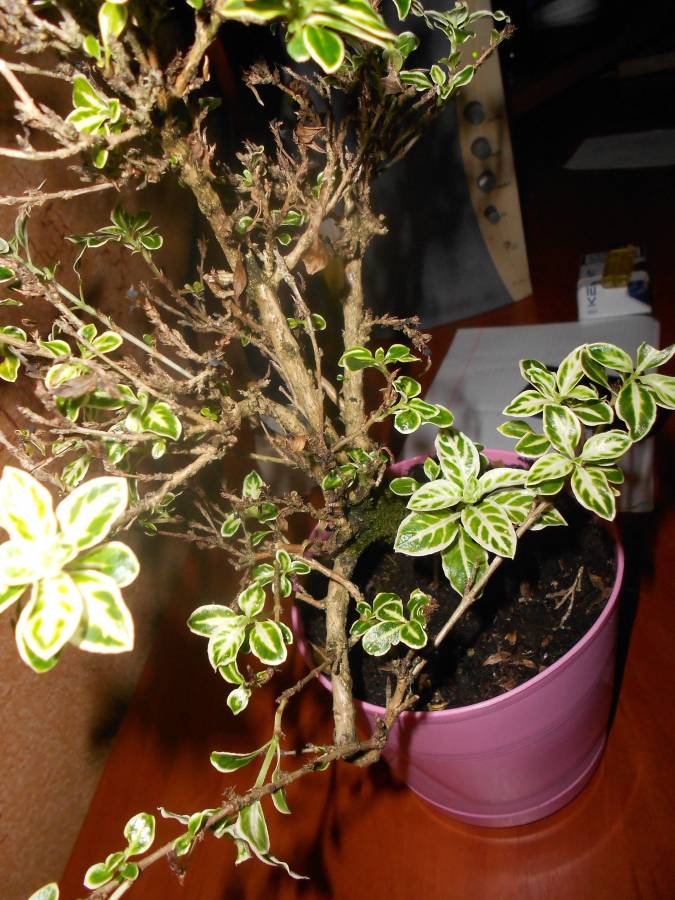 Помогите спасти дерево! Вчера мне его дали на работе и сказали "спаси!", посмотрела, а это бансай! Йолки-палки ничего не знаю, а оно еле дышит: не знаю что это за вид, сколько ему, но спасти наверное шанс есть.