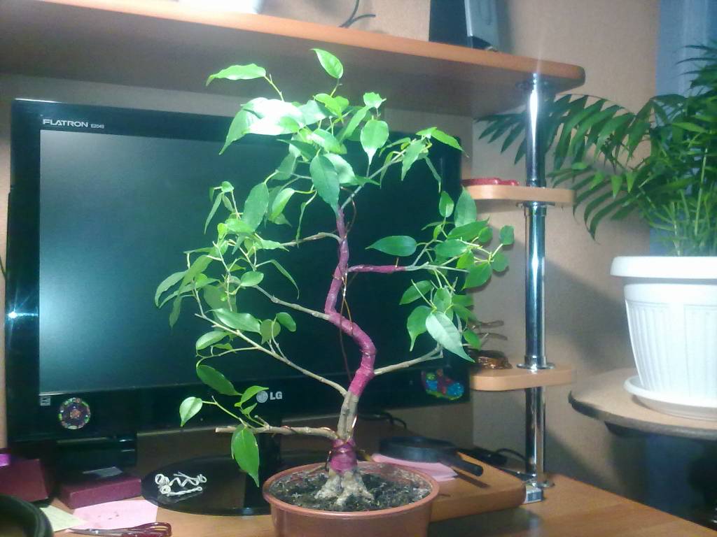Здравствуйте, нужен совет... Сращиваю три ствола фикуса. Проблема в том, что одна из двух нижних веток лишняя. Терзают сомнения какая... Подскажите, пожалуйста.