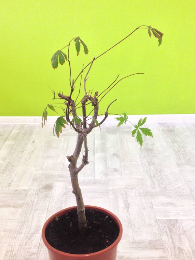 Похоже клёник Ваш долго находился в воде или под дождем, похоже на залив. Думаю он оклимается к весне. Поскольку клен листопадный, то ему нужна будет зимовка. Остальное Вам подскажут мастера
