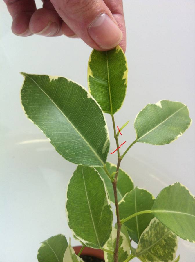 Подскажите как лучше прищипнуть фикус... только почку или вместе с ножкой и листочком?