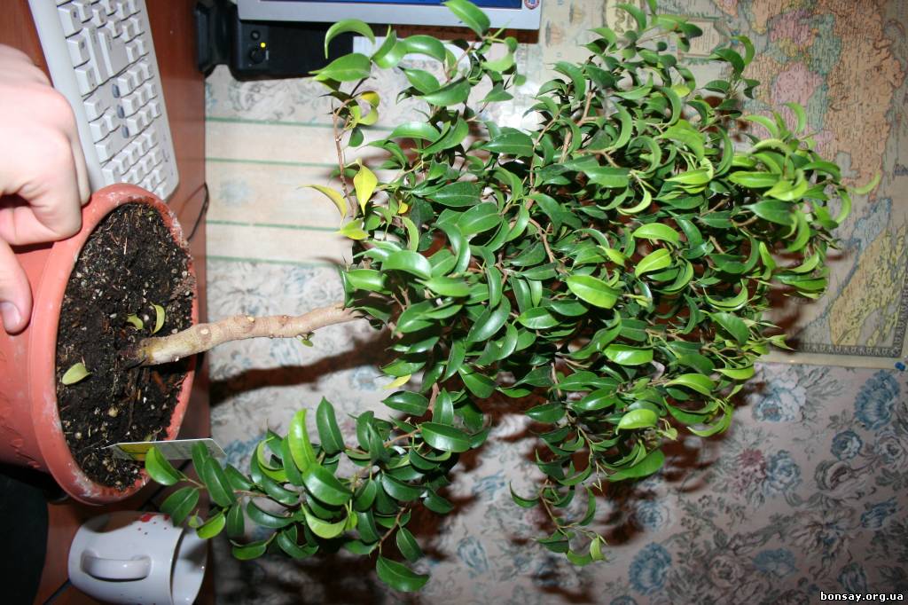 подскажите,вот фикус и вяз которые я прикупил на днях что можно сделать с фикусом??? черенковать ?? или какую форму придать ему? он уж слишком разросшийся!А вяз вроде ничего, поливаю пока не удобрял,появляются(и на фикусе) новые листики ,но из дренажных отверстий торчат корешки (см.фото)нужна ли пересадка/перевалка???