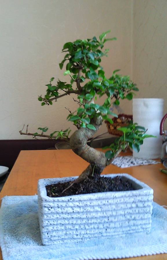 Хочу присоединится к форуму - надеюсь примите в свои ряды;) В общем мне была подарена Бирючина, представляю общественному мнению. Фотографии с разных сторон: Также корневая и исходный грунт неизвестного состава Все это в тесном пластмассовом контейнере который впихнут в подобие плошки. Также на макушке имеется пенёк