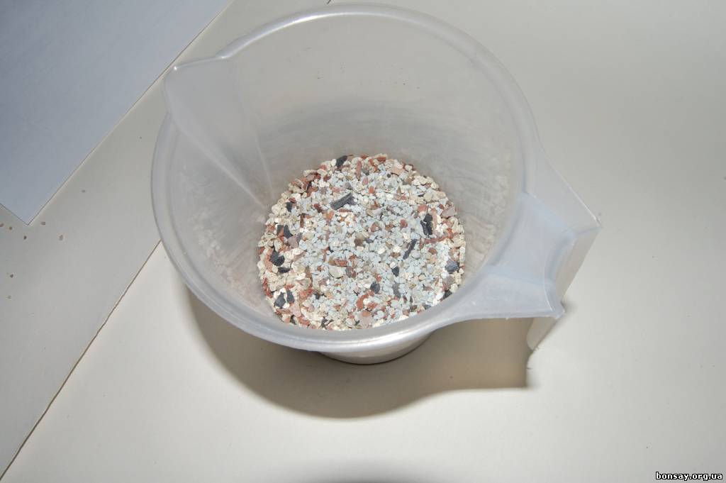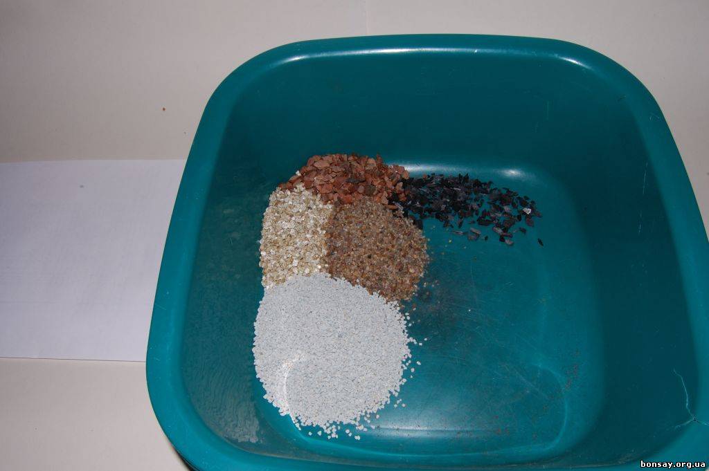 Разделил компоненты субстрата пропорционально: 40% цеолита 20% песка 20% вермикулита 20% коры Приблиз. 5% угля И засыпал для смешивания '' в одну посудину ''